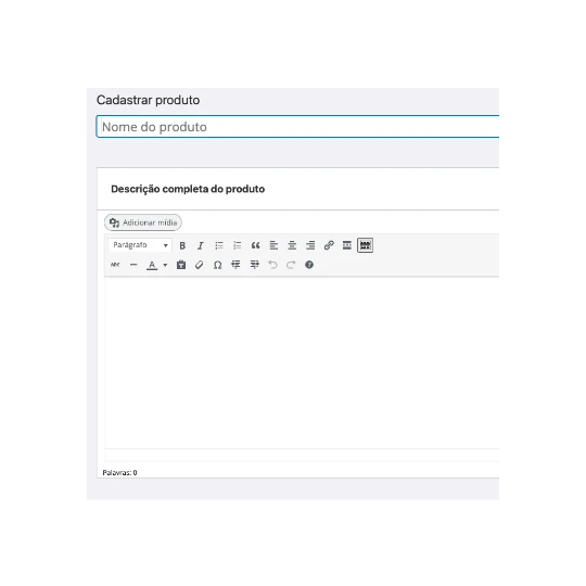 Insira as informações do produto como nome, descrição, imagens, preço, código de referência e organize em categorias.