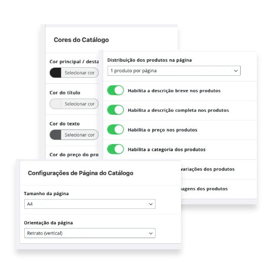 Configure as páginas, cores, layout e as informações que você deseja para cada página do catálogo PDF.
