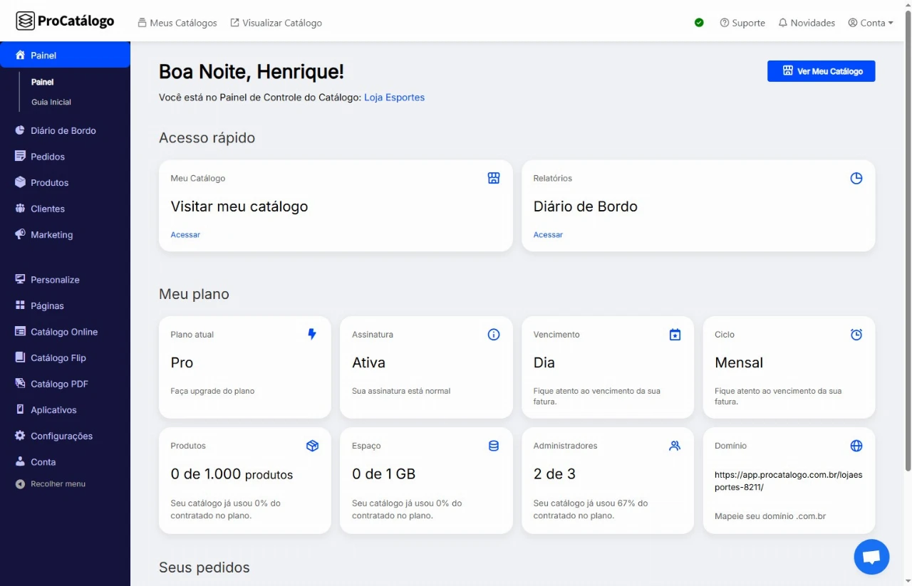 Para começar, acesse o Painel de Controle do seu catálogo.
