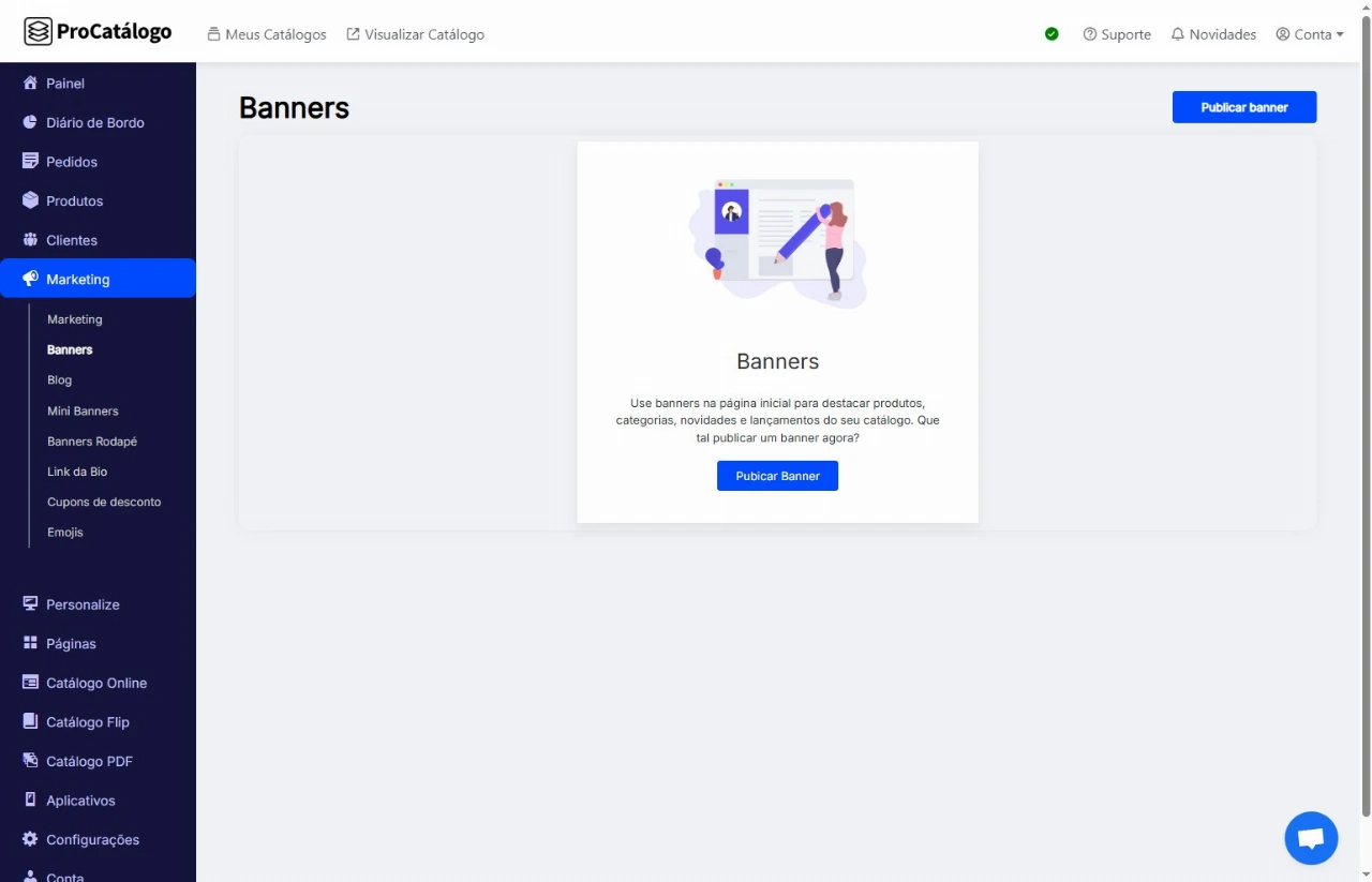 ✅ Pronto! Seu banner foi publicado e já está disponível no seu catálogo. Clique em Visualizar Catálogo para ver suas mudanças.