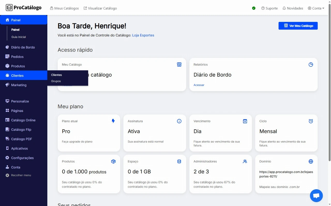Lembre-se: o grupo deve ser cadastrado previamente no menu Grupos.