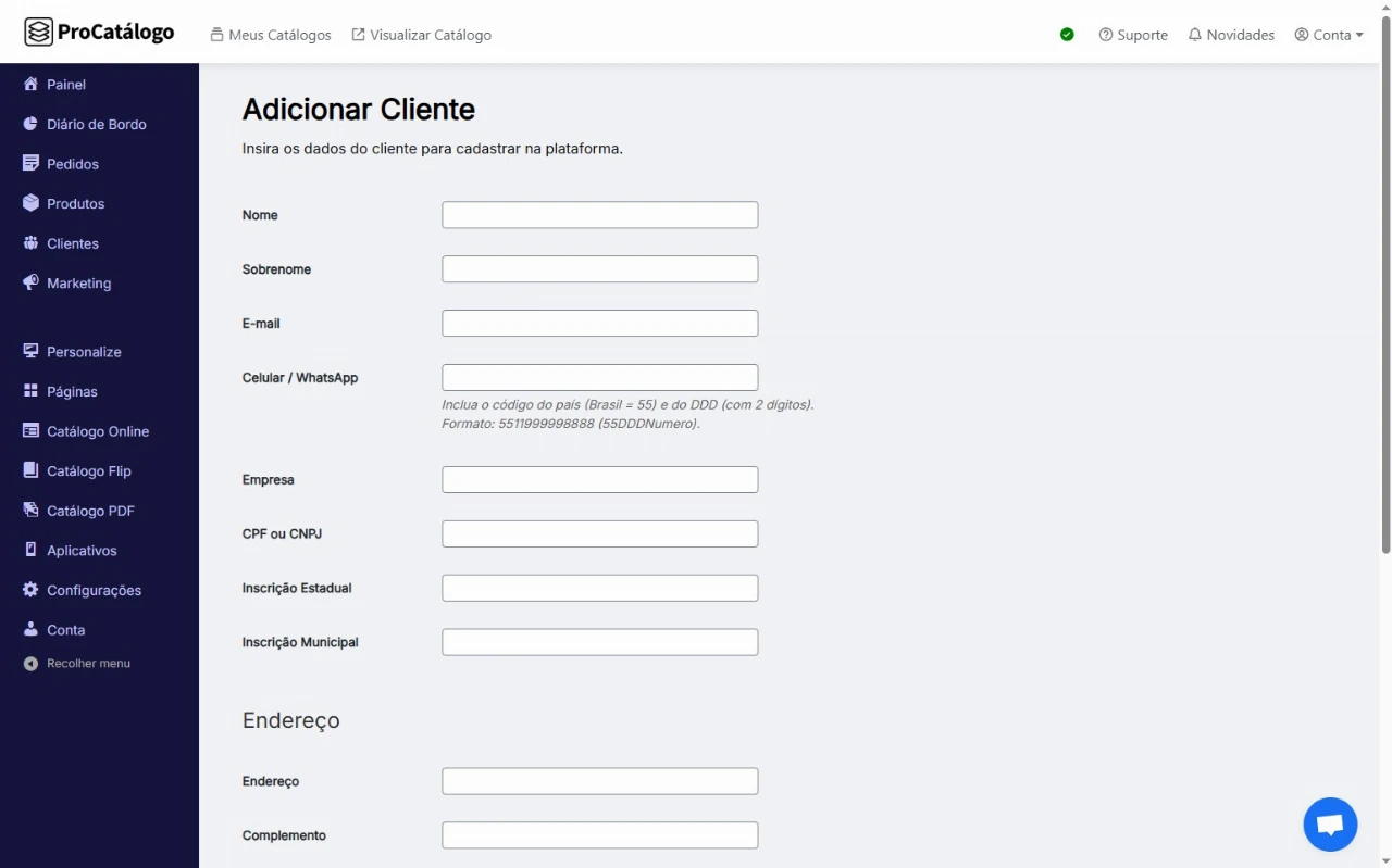 Ao fazer o cadastro de um cliente, você deverá informar: