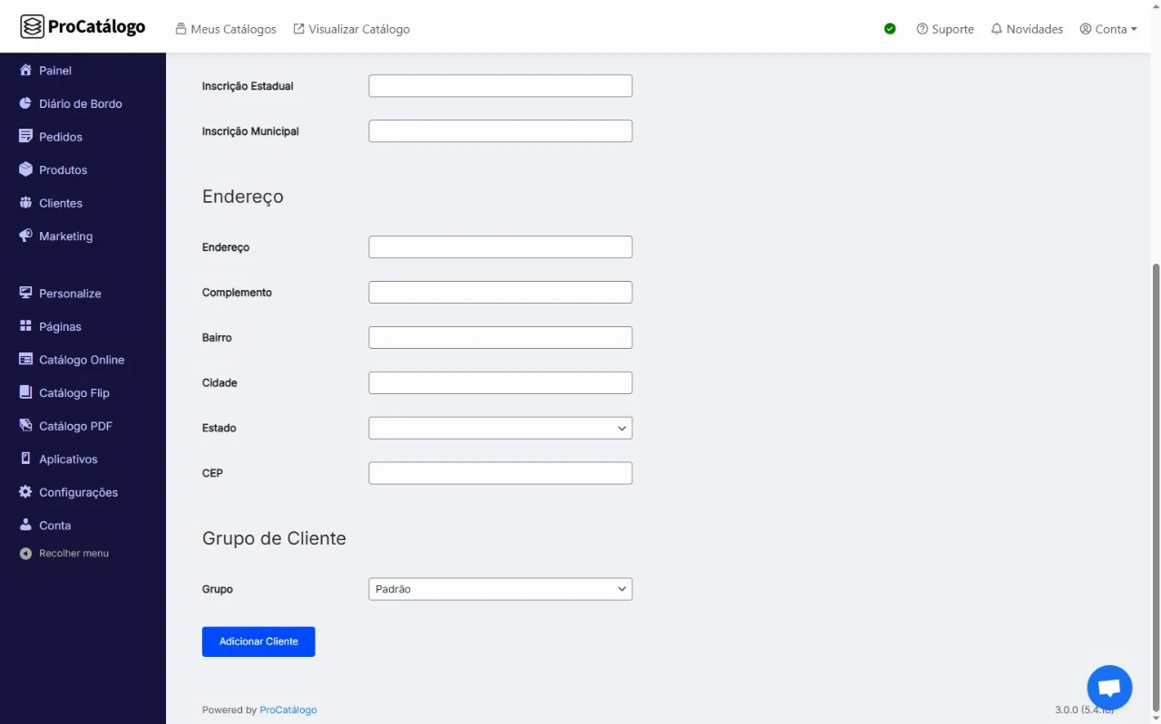 Em Grupo de Cliente, escolha o grupo ao qual o cliente pertence. Com grupos, você pode organizar seus clientes, de acordo com a sua estratégia comercial.