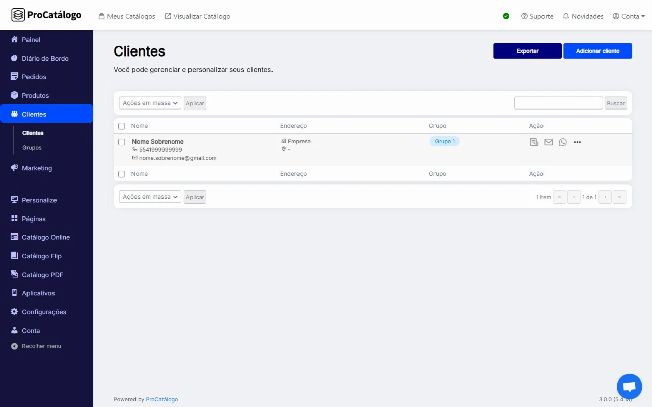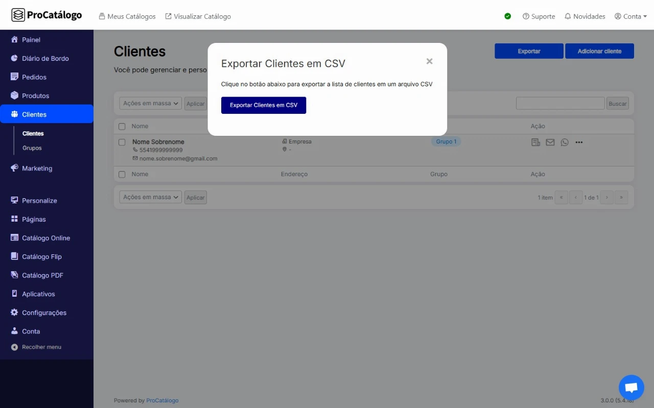 Caso queira Exportar sua lista de clientes, clique no botão exportar.
