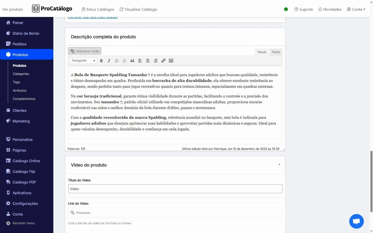 Pronto, seu produto foi publicado e já está disponível no seu catálogo.