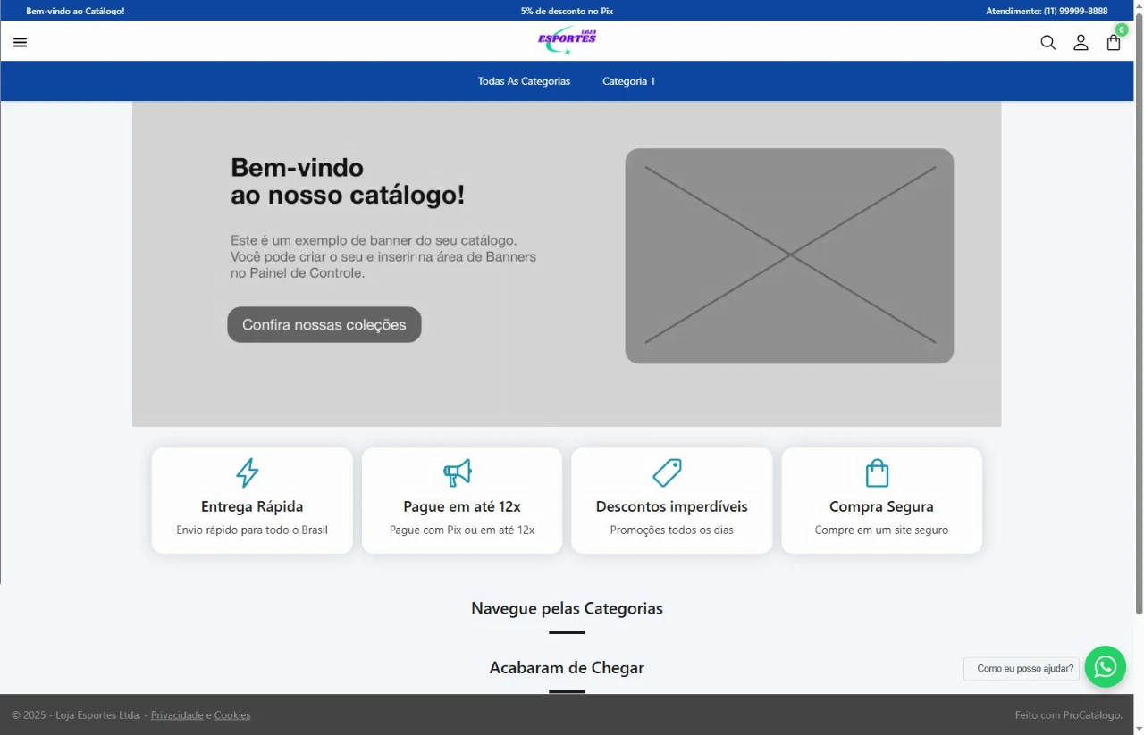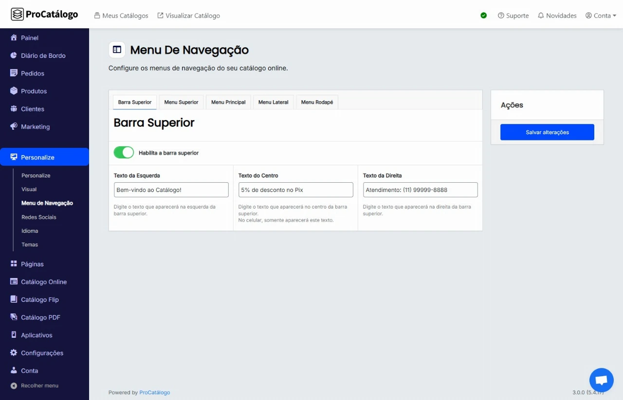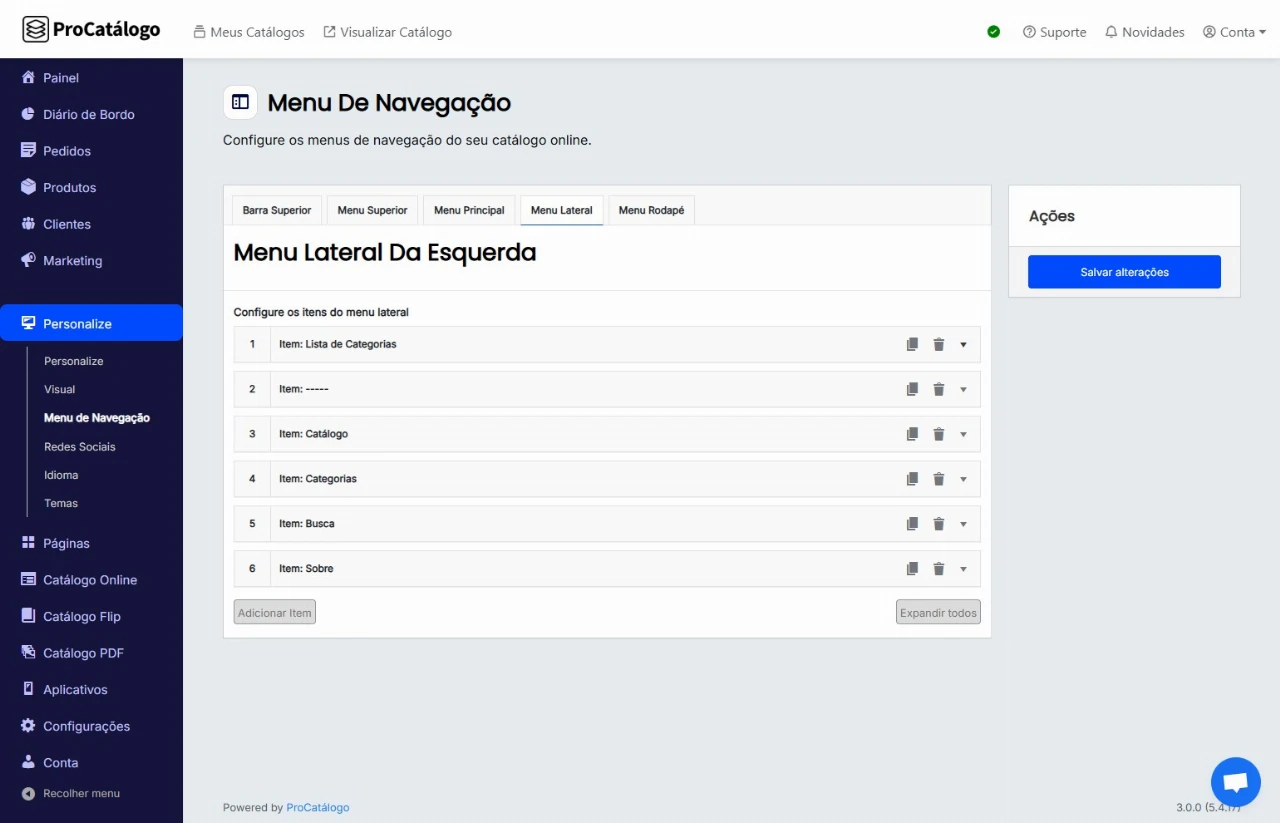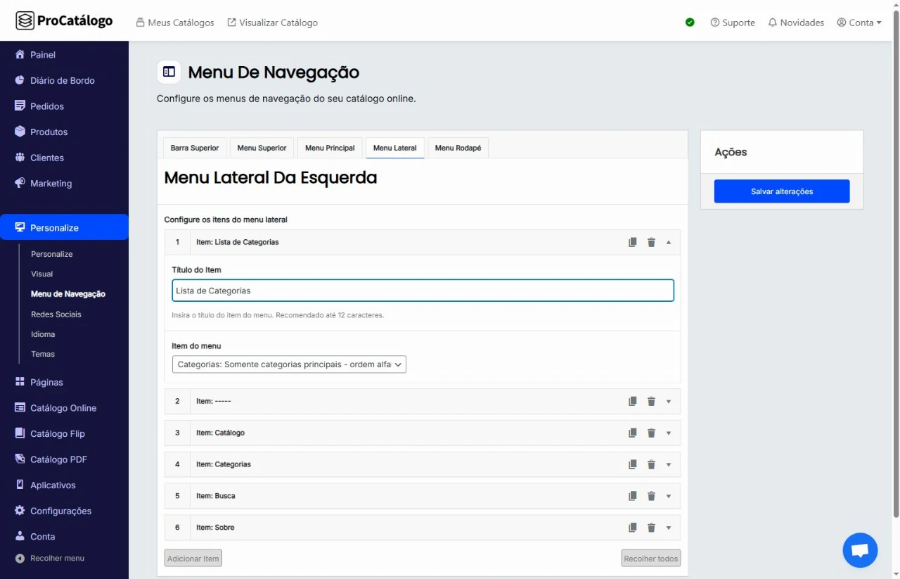 Pronto, suas alterações foram feitas e já estão disponíveis no menu lateral do seu catálogo.