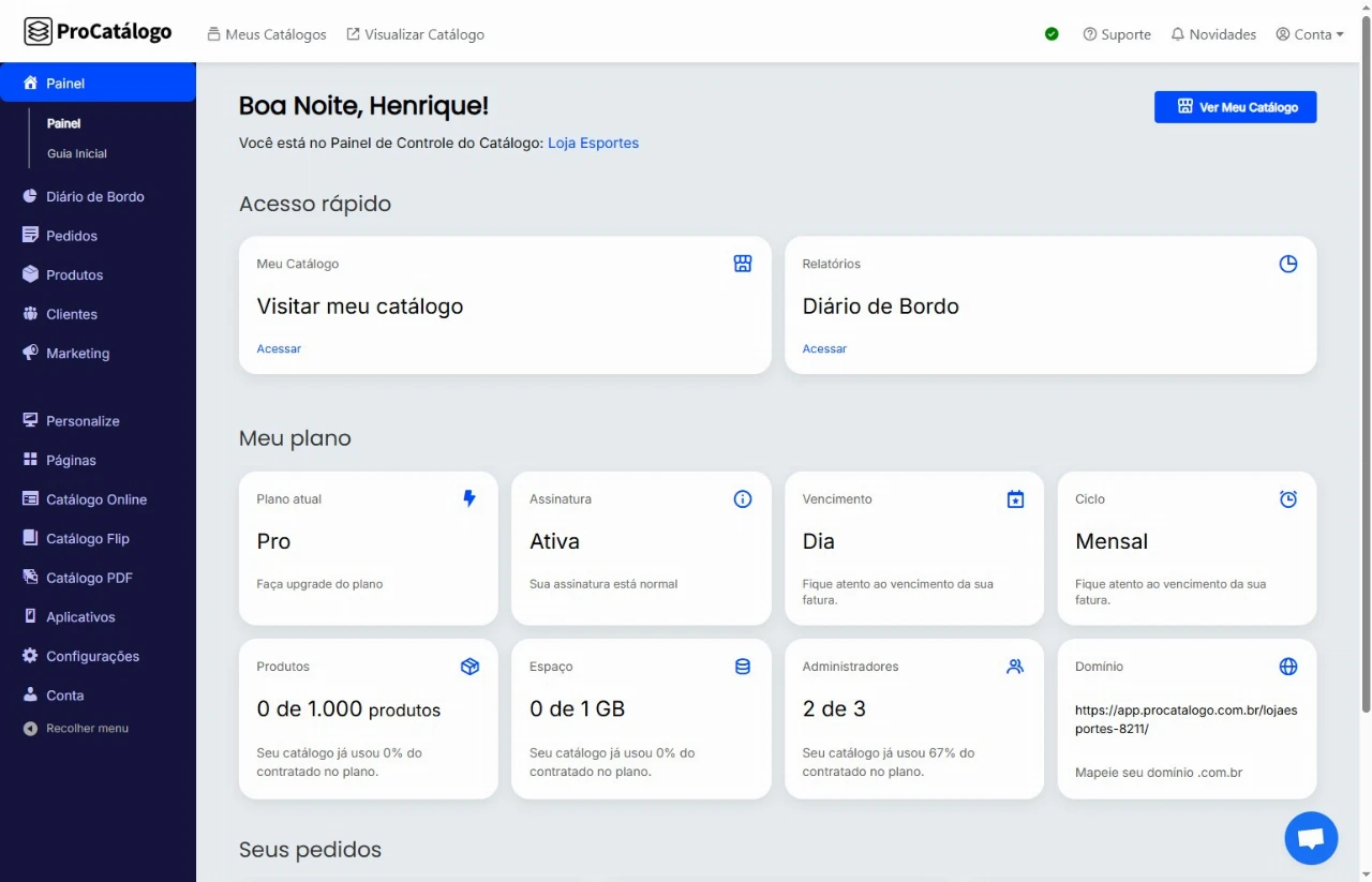 Para começar, acesse o Painel de Controle do seu catálogo.