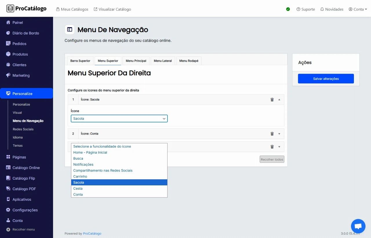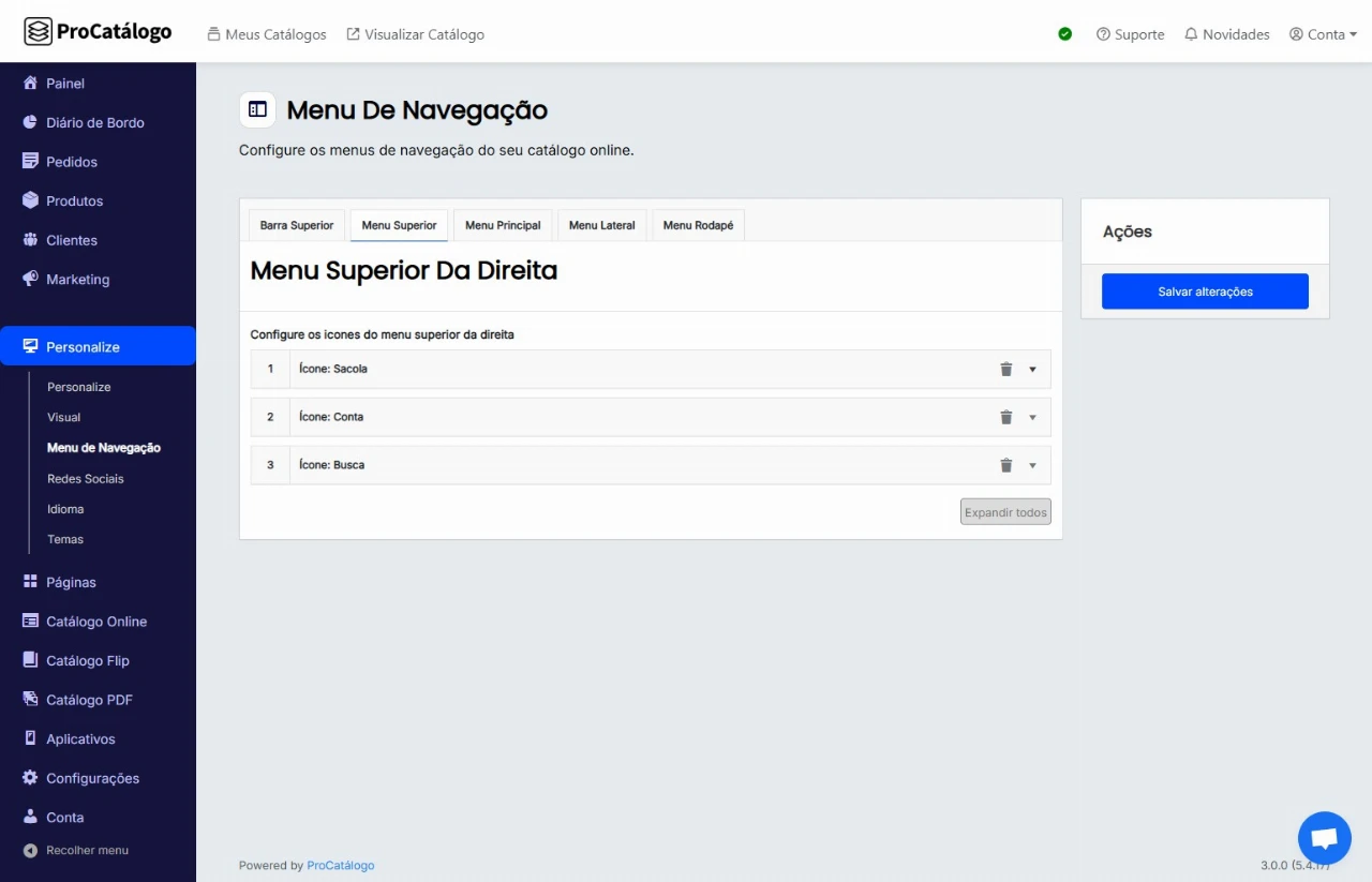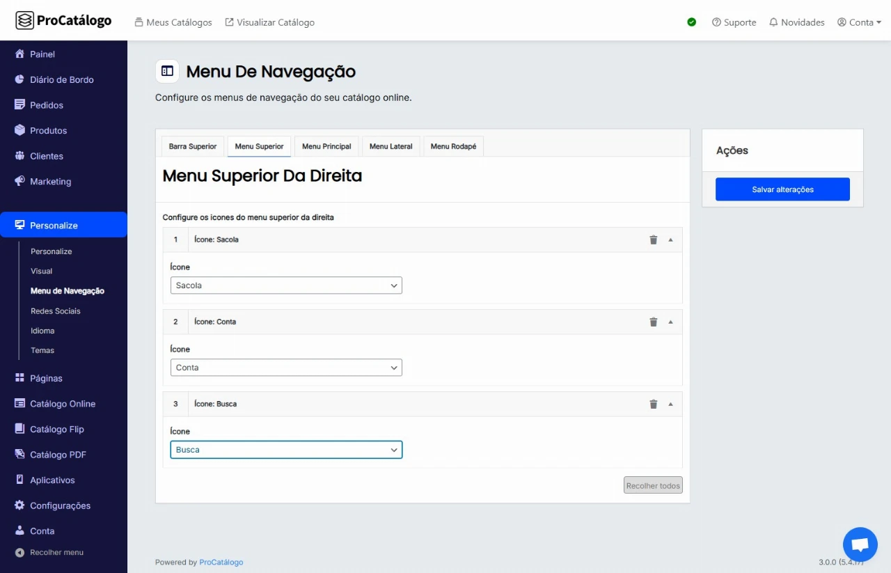 ✅ Pronto! Suas alterações já foram efetuadas e estão visíveis no menu superior do seu catálogo.